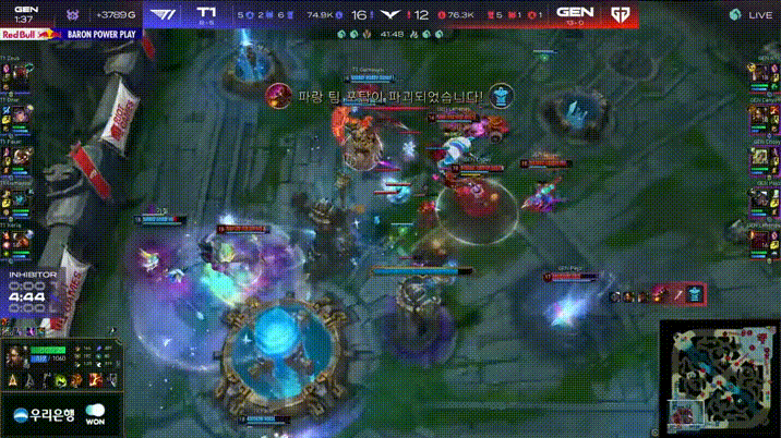 LCK:Bdd卢锡安一打三反杀Faker岩雀,Oner策动攻势打成2换2