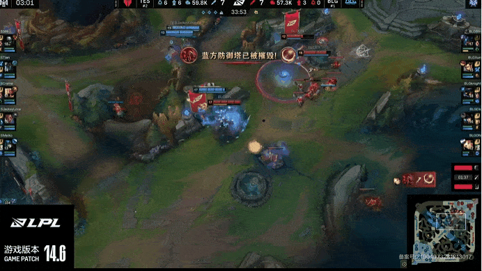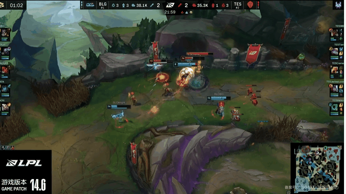 LPL:BLG集合推进中路,knight重演上路被抓