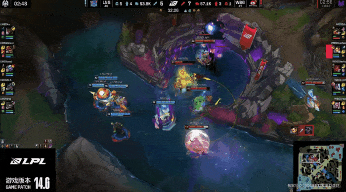 LPL:赛娜W控住WBG两人,LNG跟上伤害豹女拿到三杀
