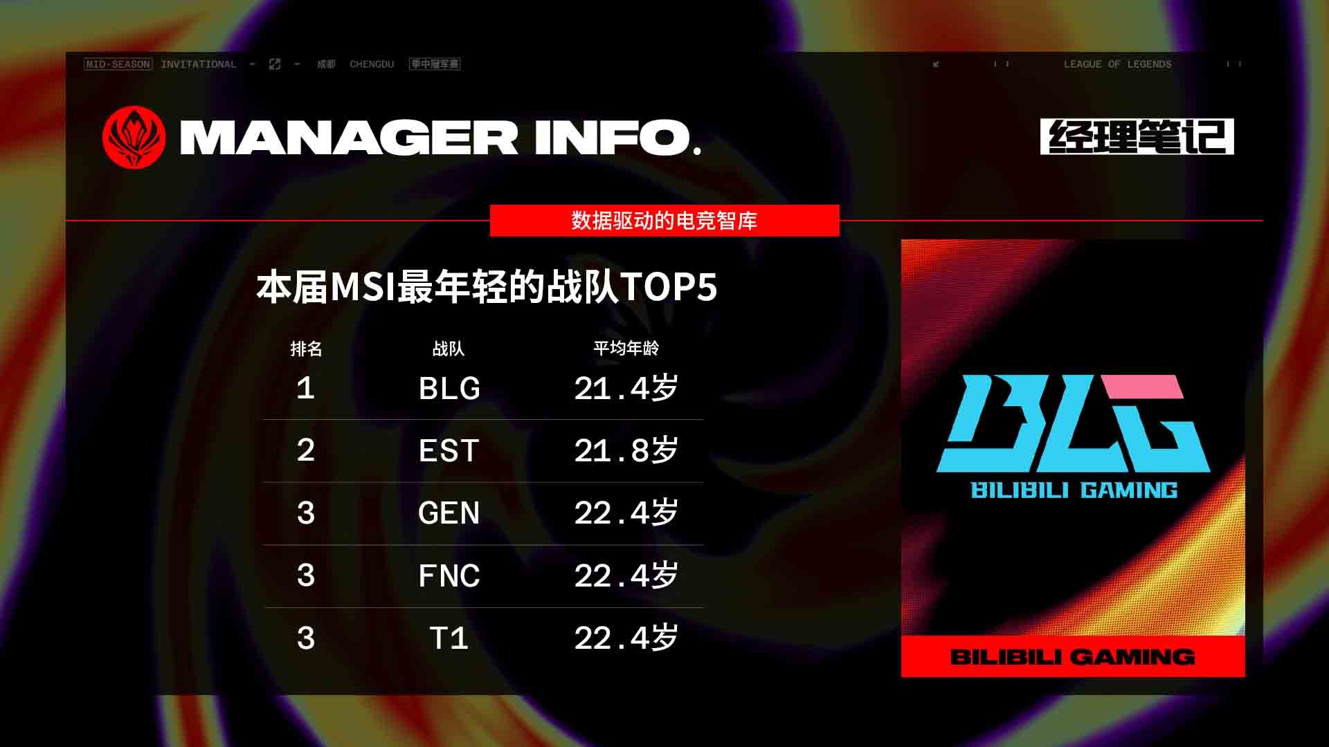 MSI赛前数据:BLG为本届MSI最年轻的战队