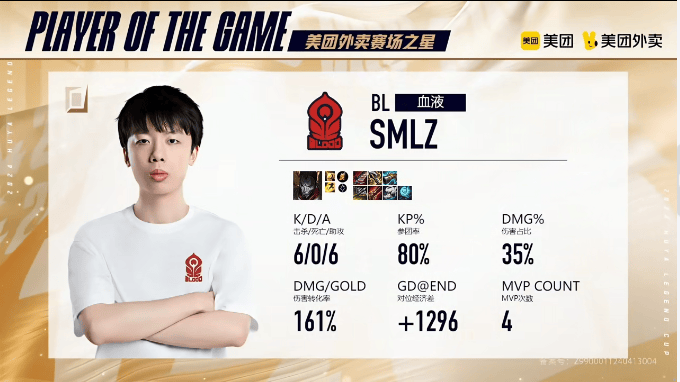 LGC:smlz打出6/0/6完美战绩,拿到BGM对战BL第三局MVP