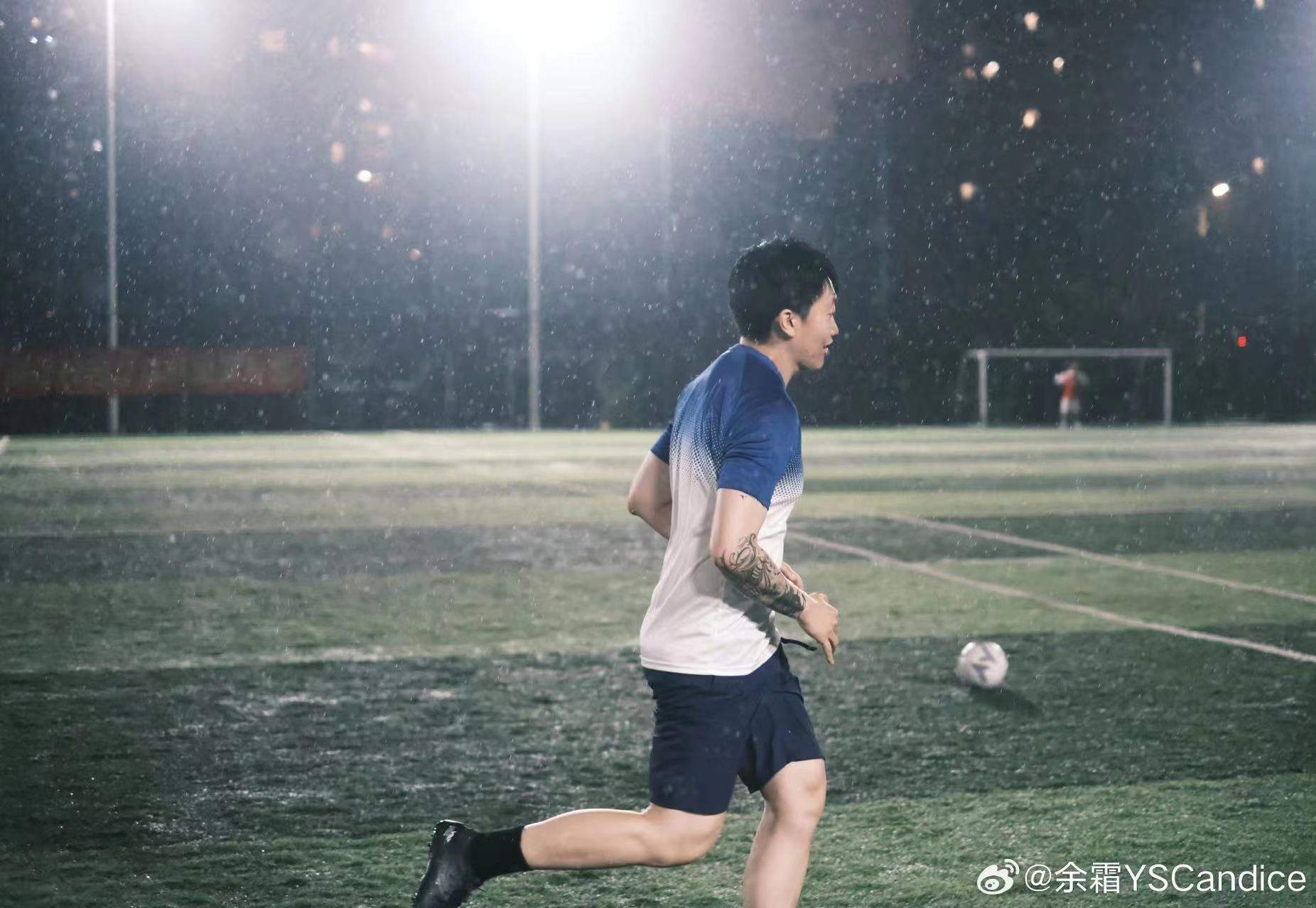 余霜分享陪管泽元踢球照片:陪踢,发现居然要踢两个小时