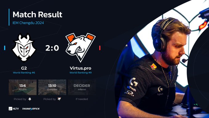 CS2 IEM成都:超级通天代太子!G2零封VP成功挺进四强