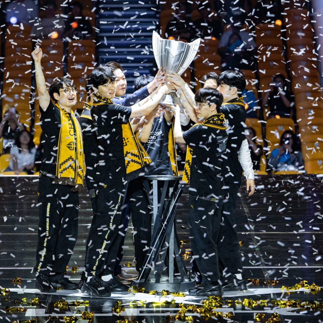 捧杯瞬间!GEN全队兴奋上台捧起LCK冠军奖杯