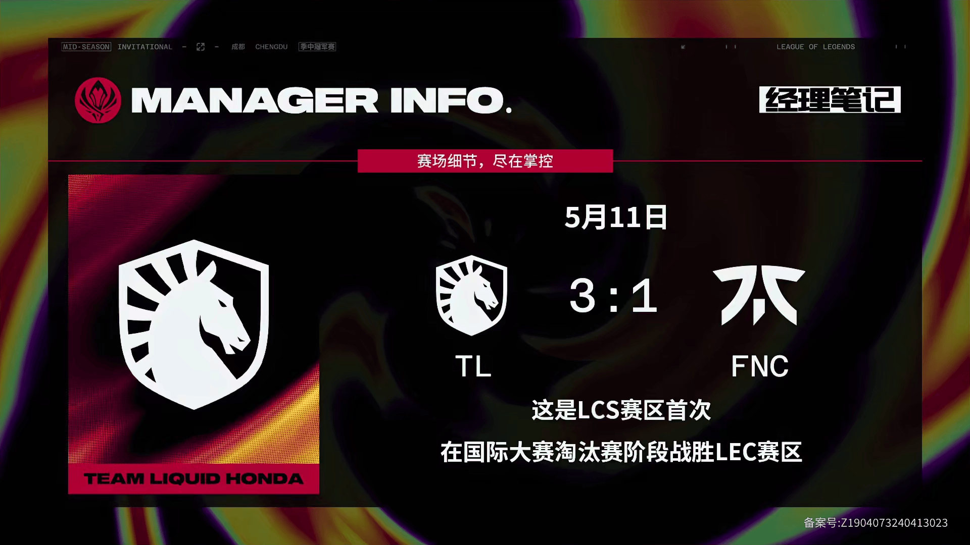 TL战胜FNC是LCS赛区首次在国际大赛淘汰赛阶段战胜LEC赛区