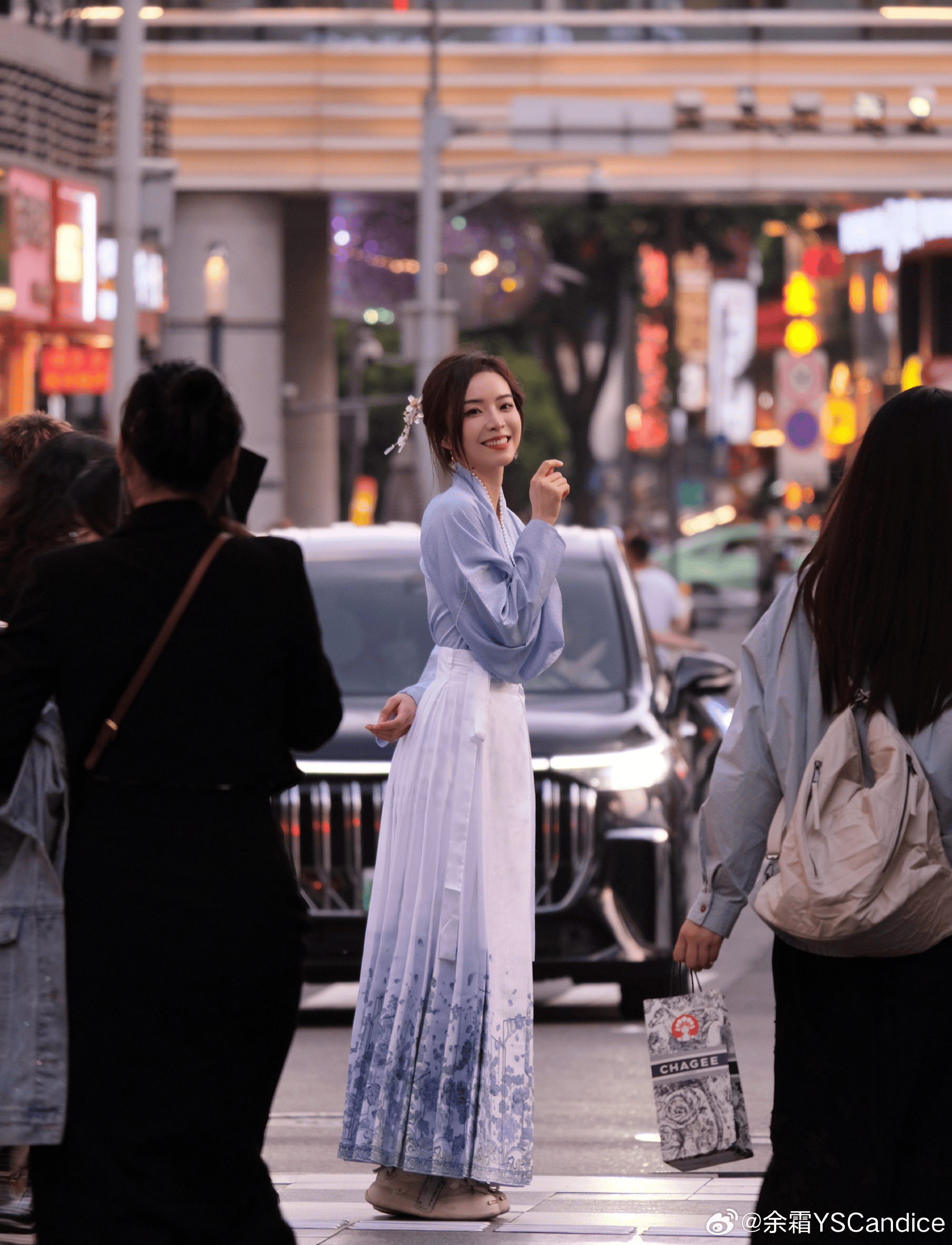 LPL主持人余霜晒照:青花瓷马面裙!温柔了岁月!