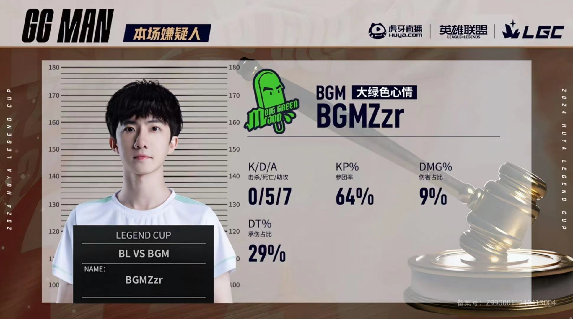 LGC:Xiyang打出4/2/11战绩,拿到BGM对战BL第五局MVP