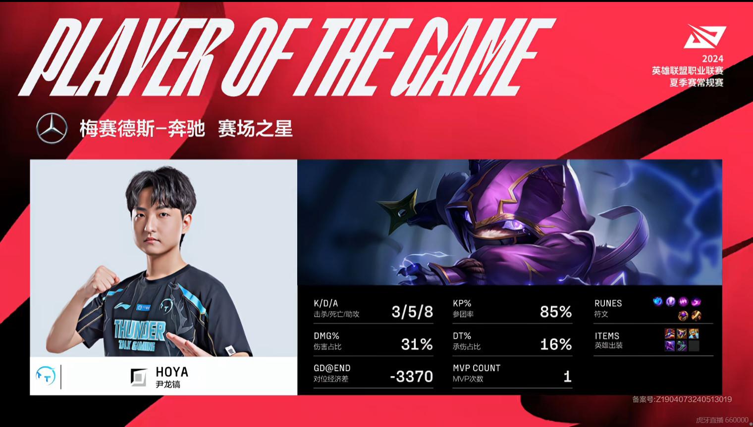 HOYA凯南砍下3/5/8的战绩,拿下WE对阵TT首局MVP
