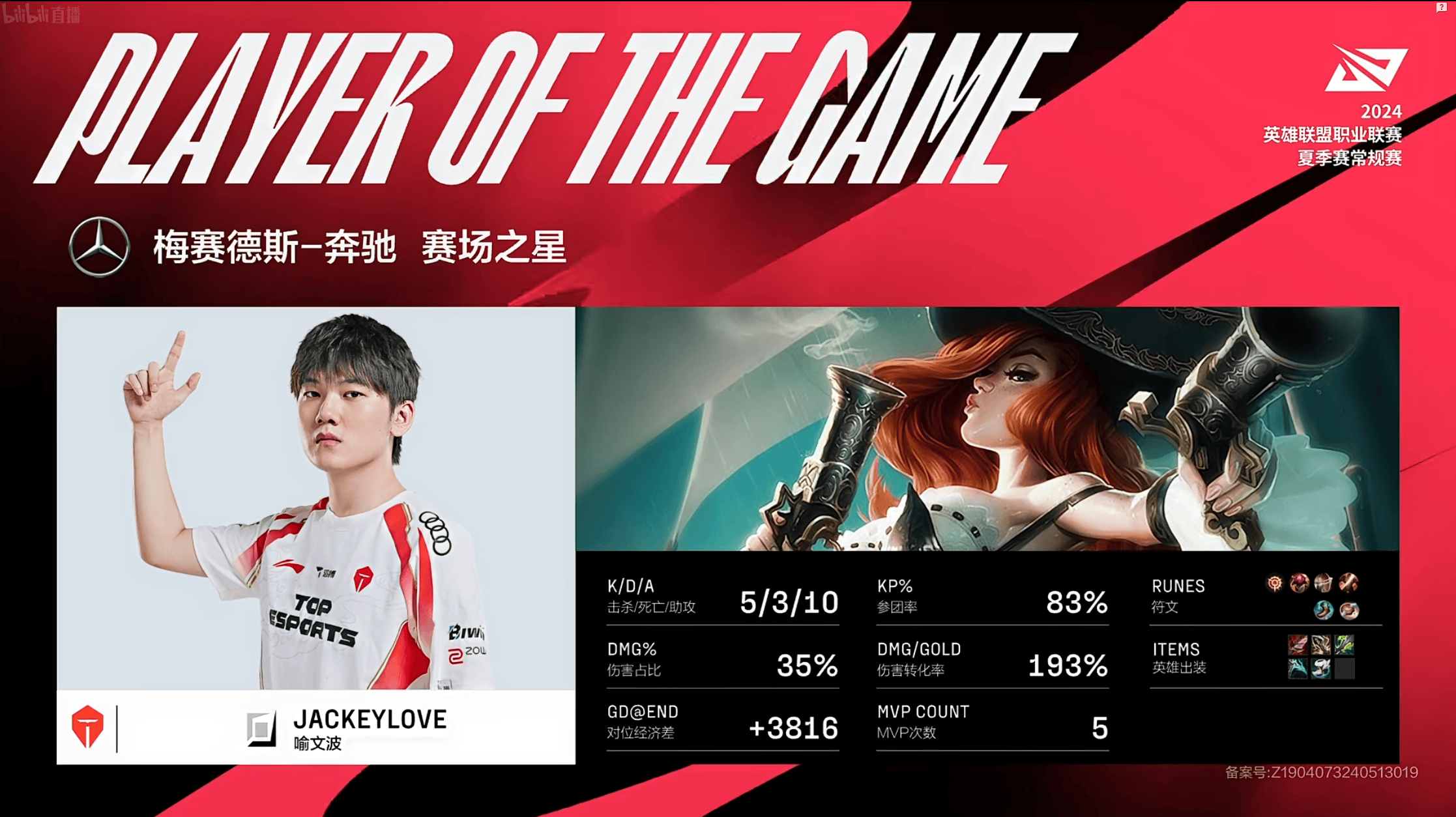 Bdd飞机砍下13/3/9的战绩,拿下KT对阵HLE首局MVP