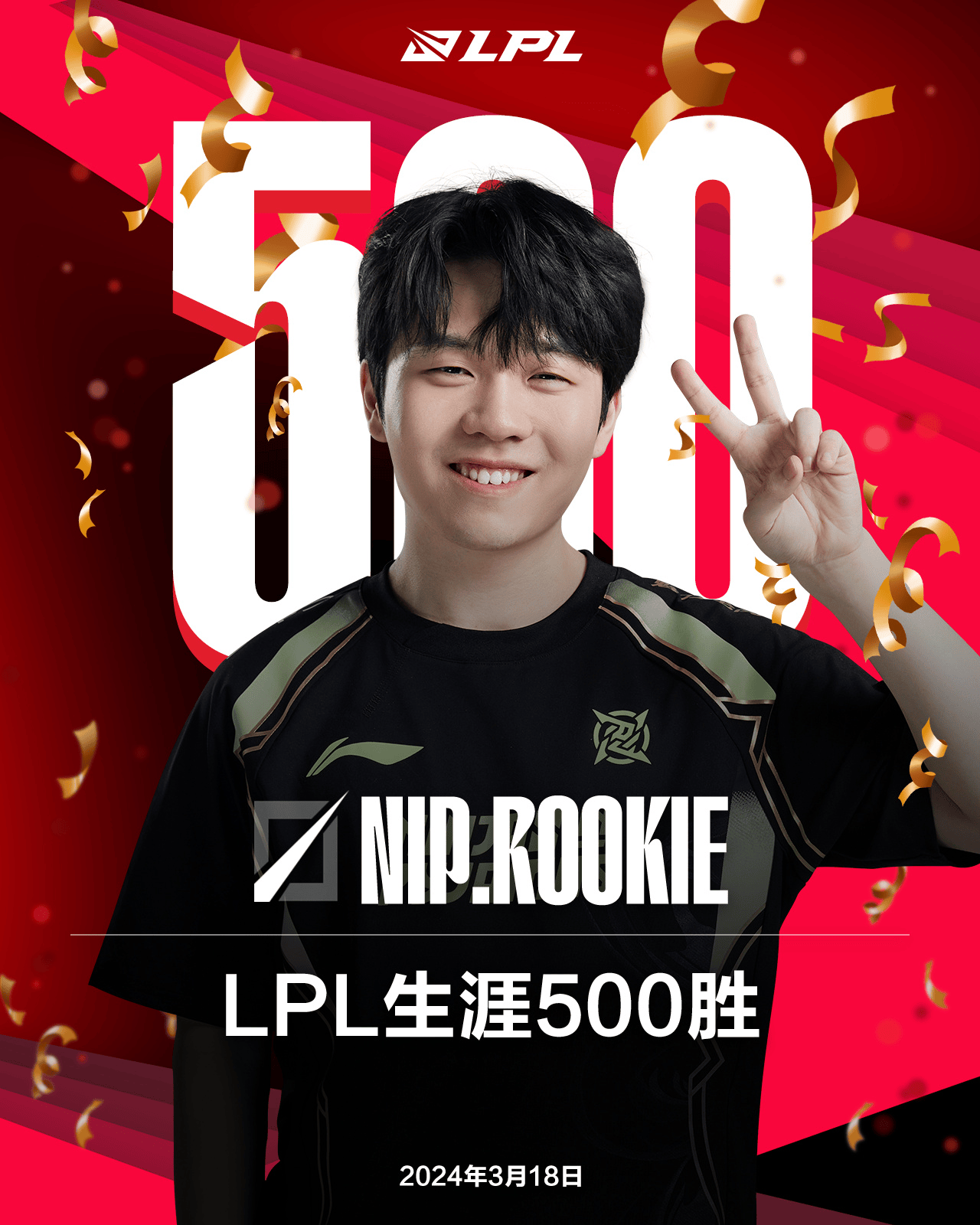 里程碑:Rookie成为LPL第三位达成联500胜场的选手