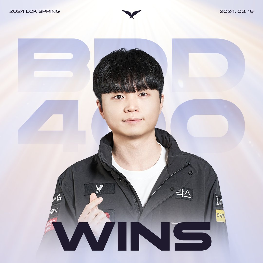 里程碑:KT.Bdd达成LCK生涯400成就,LCK历史第四