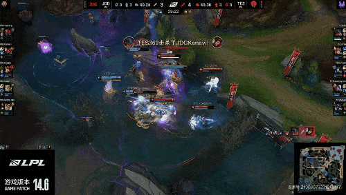 LPL:Kanavi猴子果断gank,JDG下路集火秒杀杰克