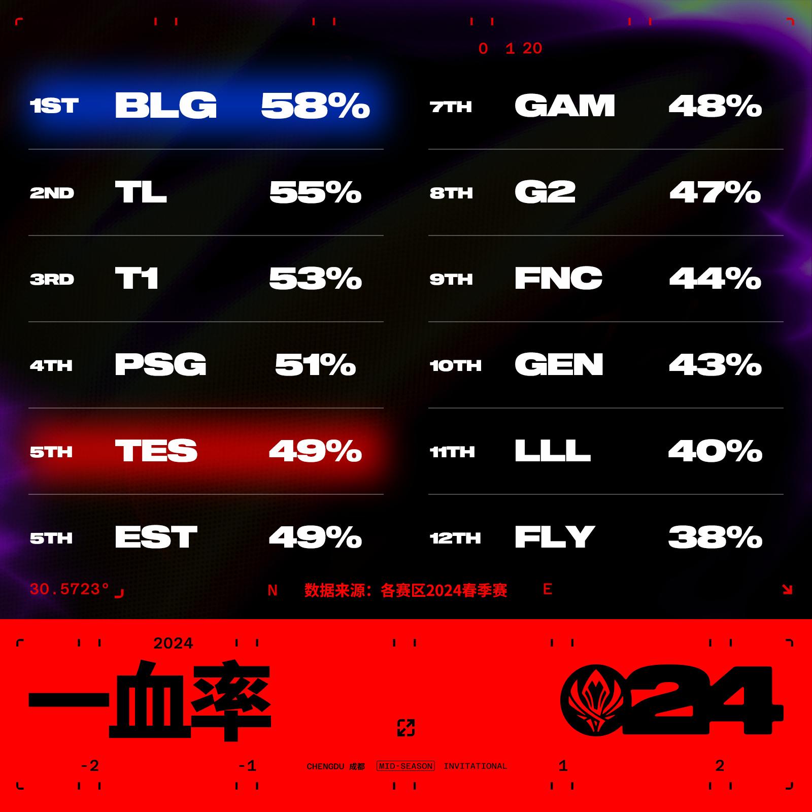 MSI战队巡礼-战队数据榜:BLG多项数据位列前二