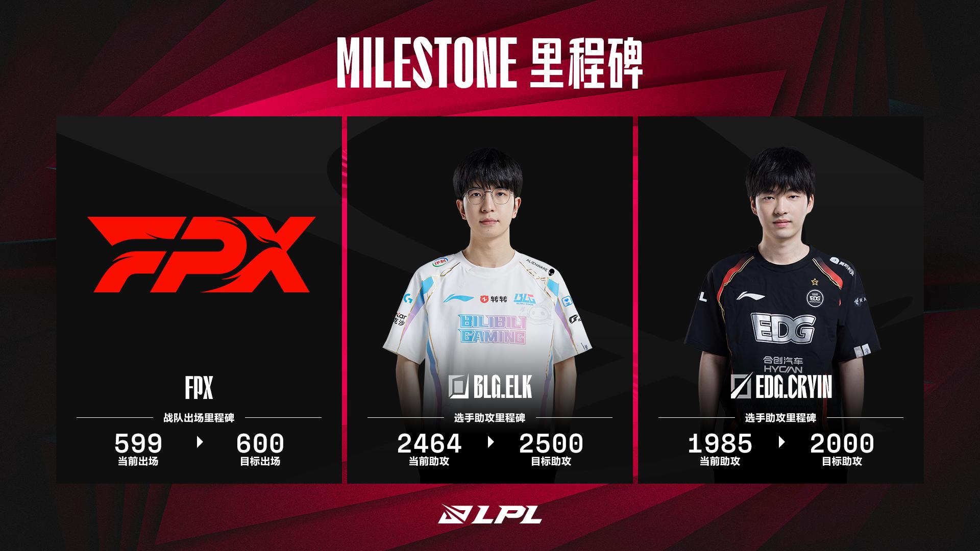 LPL今日数据里程碑预告:Cryin距离2000助攻差15次助攻