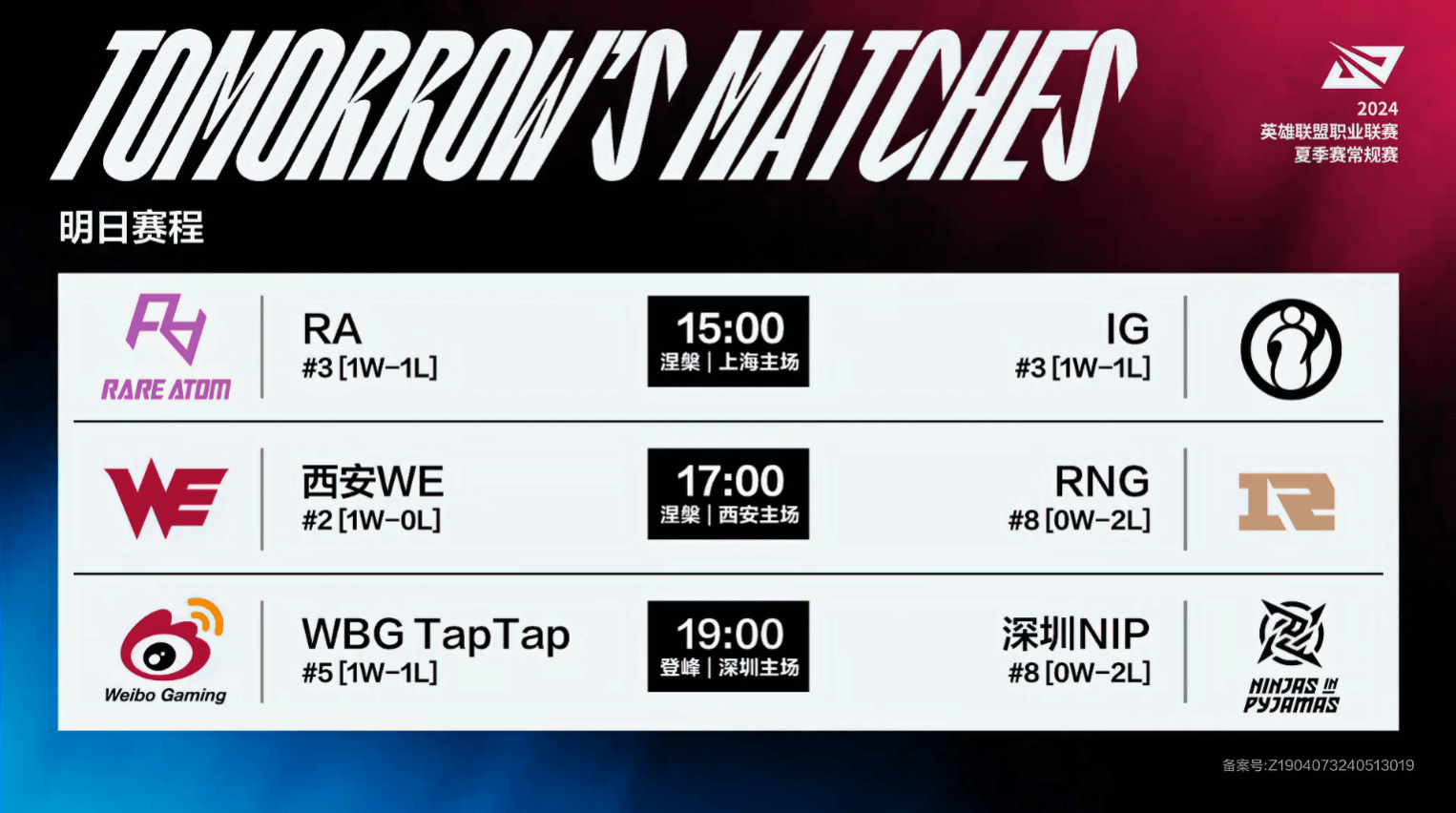 LPL夏季赛W6D6虎扑墙:RA vs IG、WE vs RNG、WBG vs NIP