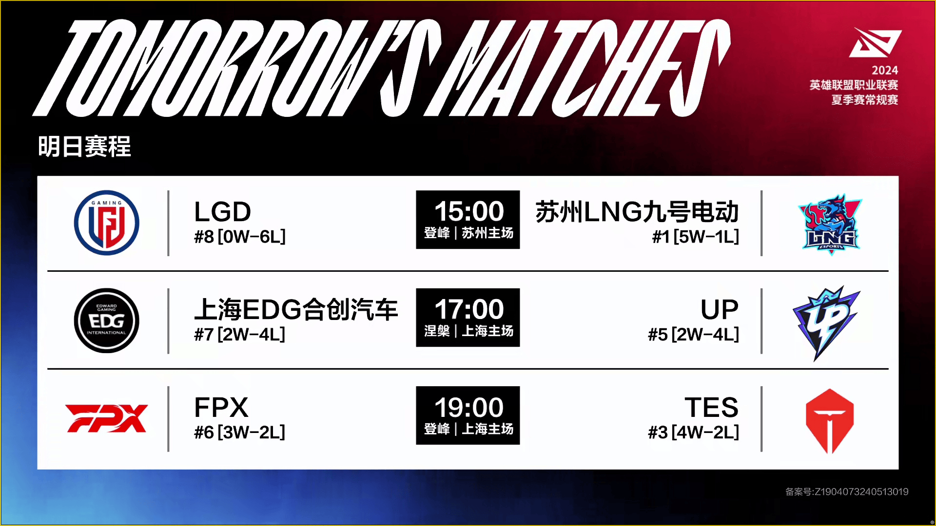 LPL夏季赛W8D6虎扑墙:LGD vs LNG、EDG vs UP、FPX vs TES