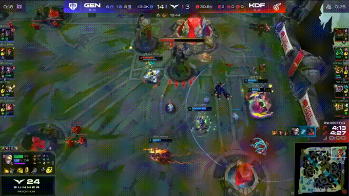 LCK:KT三人越塔未能见效,Gumayusi女枪塔下二打三打出1换2