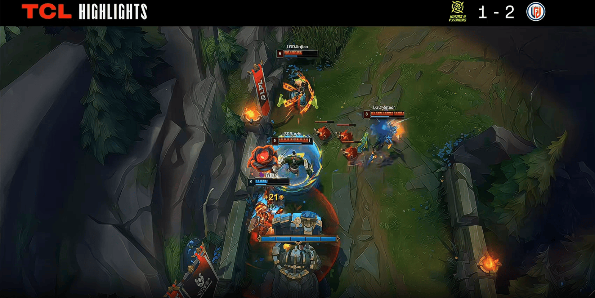 LPL:NIP下野辅三人主动入侵野区,Zhuo女坦收下牛头一血