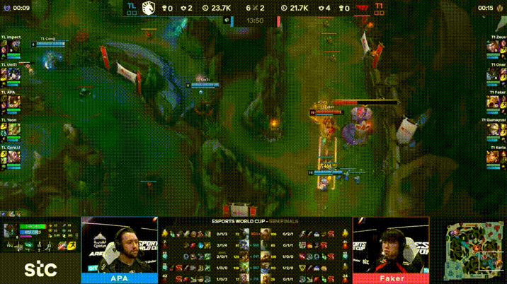 EWC:GOAT!Faker沙皇一打二塔下单杀APA天肥炸弹人