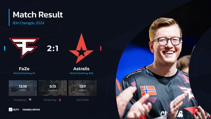 CS2 IEM成都:又双叒进决赛!棋胜一招FaZe鏖战力克A队