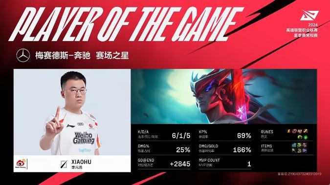 VicLa使用卢锡安打出6/4/4的战绩,拿到RA对阵IG第二局MVP