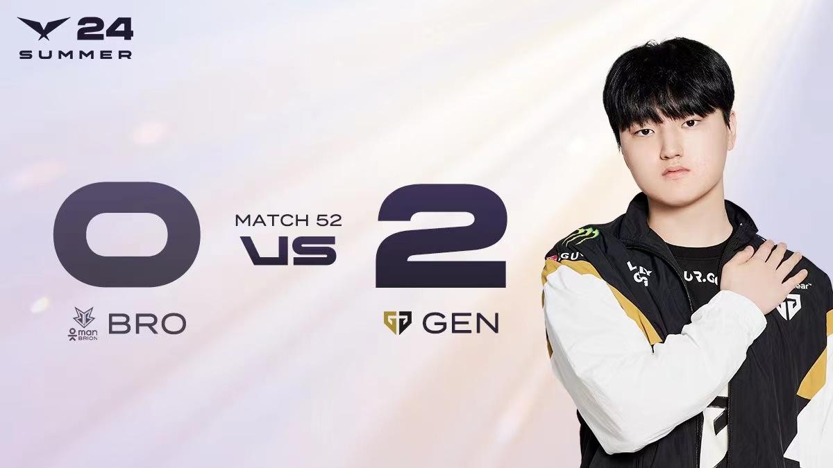 GEN战胜BRO取得LCK联赛25连胜,打破此前T1创下的24连胜记录