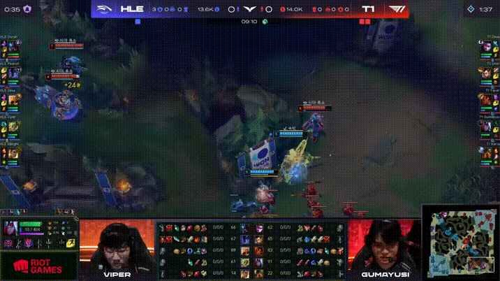 HLE 1-0 T1:Zeus卡牌超级失误!HLE落后11k经济惊天大翻盘