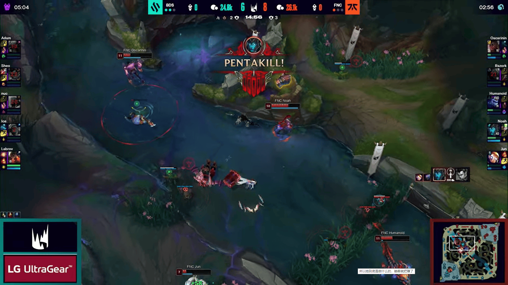 LPL:knight辛德拉e闪命中奎桑提,BLG追击完成1换4
