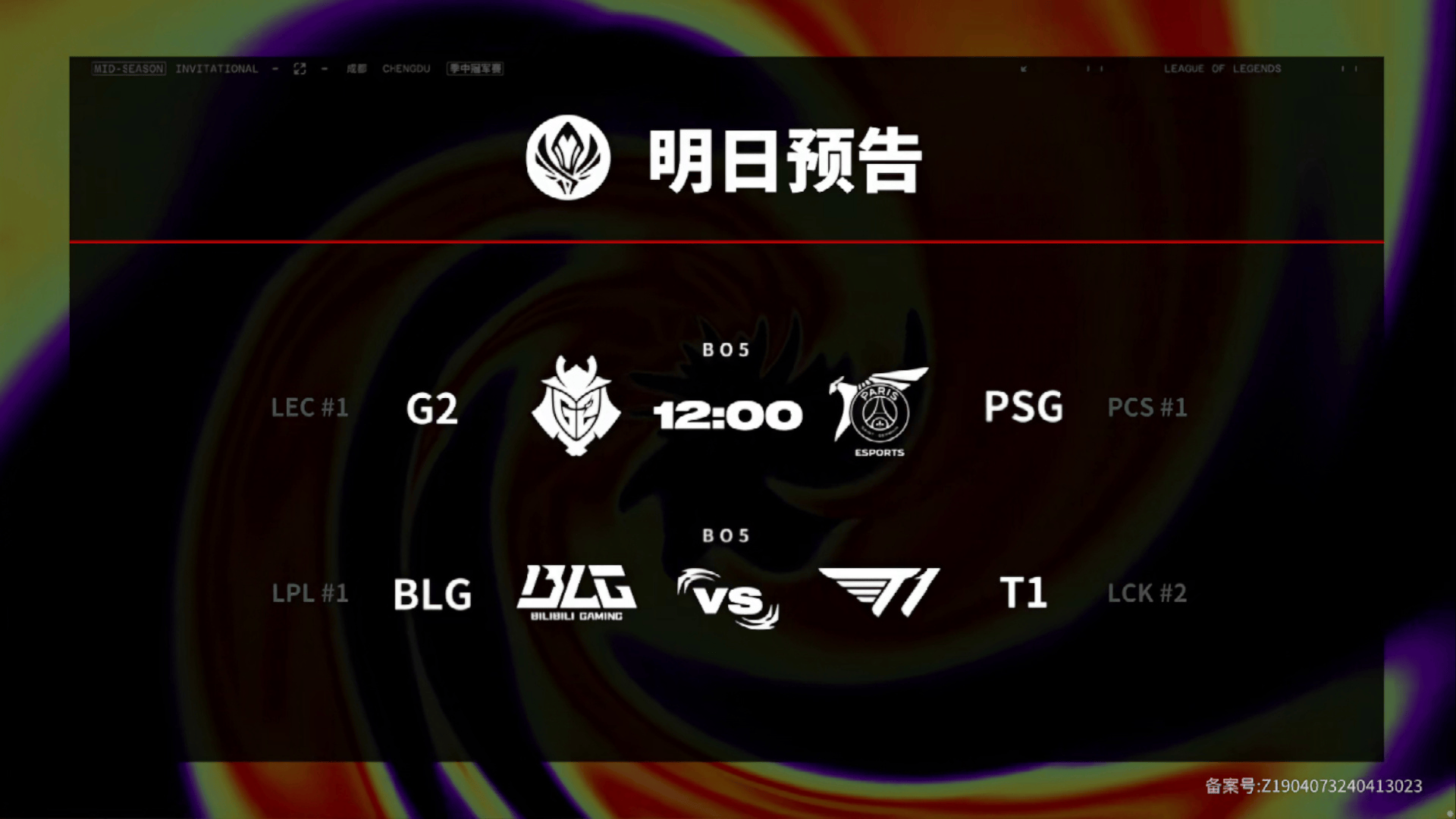 2024成都MSI胜败分组赛DAY6虎扑墙:G2 vs PSG、T1 vs BLG