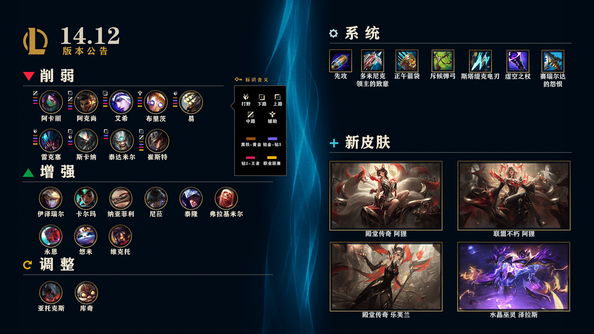国服14.12版本公告:剑魔、飞机调整;蝎子阿卡丽艾希等削弱