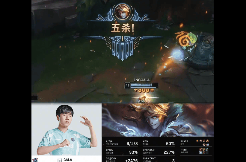 LPL高光时刻:GALA拿下夏季赛第一个五杀