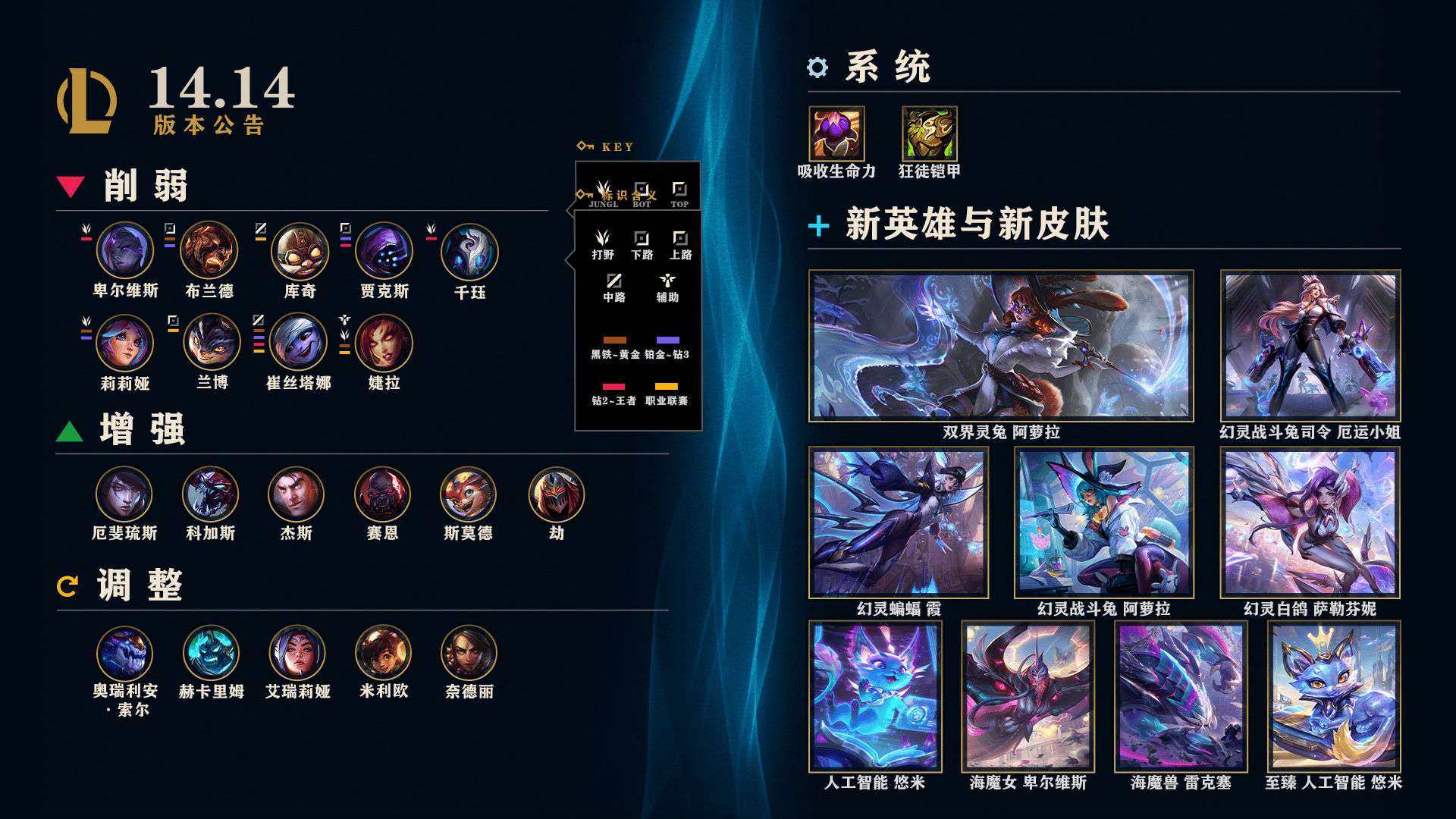 LOL国服14.14版本公告:小炮、兰博、婕拉等削弱;月男加强