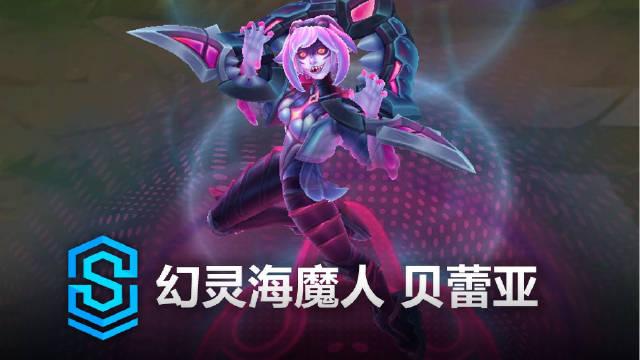 LOL幻灵海魔人-贝蕾亚皮肤展示:回城时,半空中悬浮一块电子屏幕