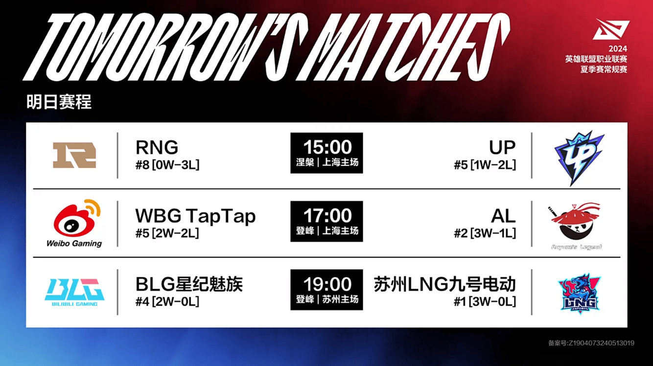 LPL夏季赛W7D4虎扑墙:RNG vs UP、WBG vs AL、BLG vs LNG
