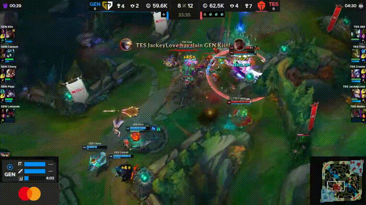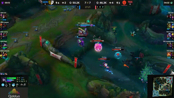 TES首局战胜GEN,同时这也是MSI后GEN的第一次小局落败