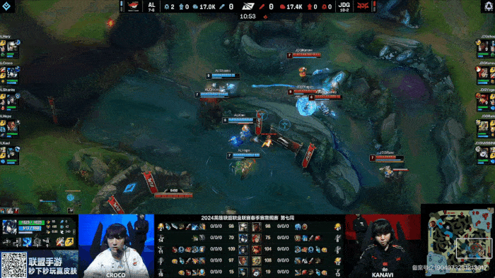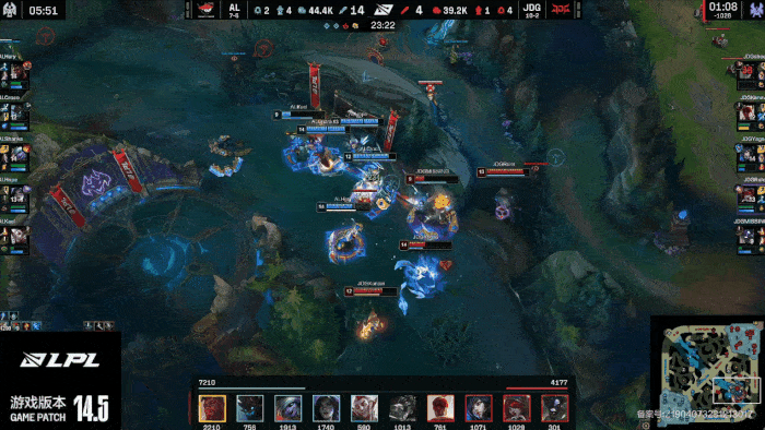 LPL:奎桑提鳄鱼各自切死对面AD,JDG打出一换三