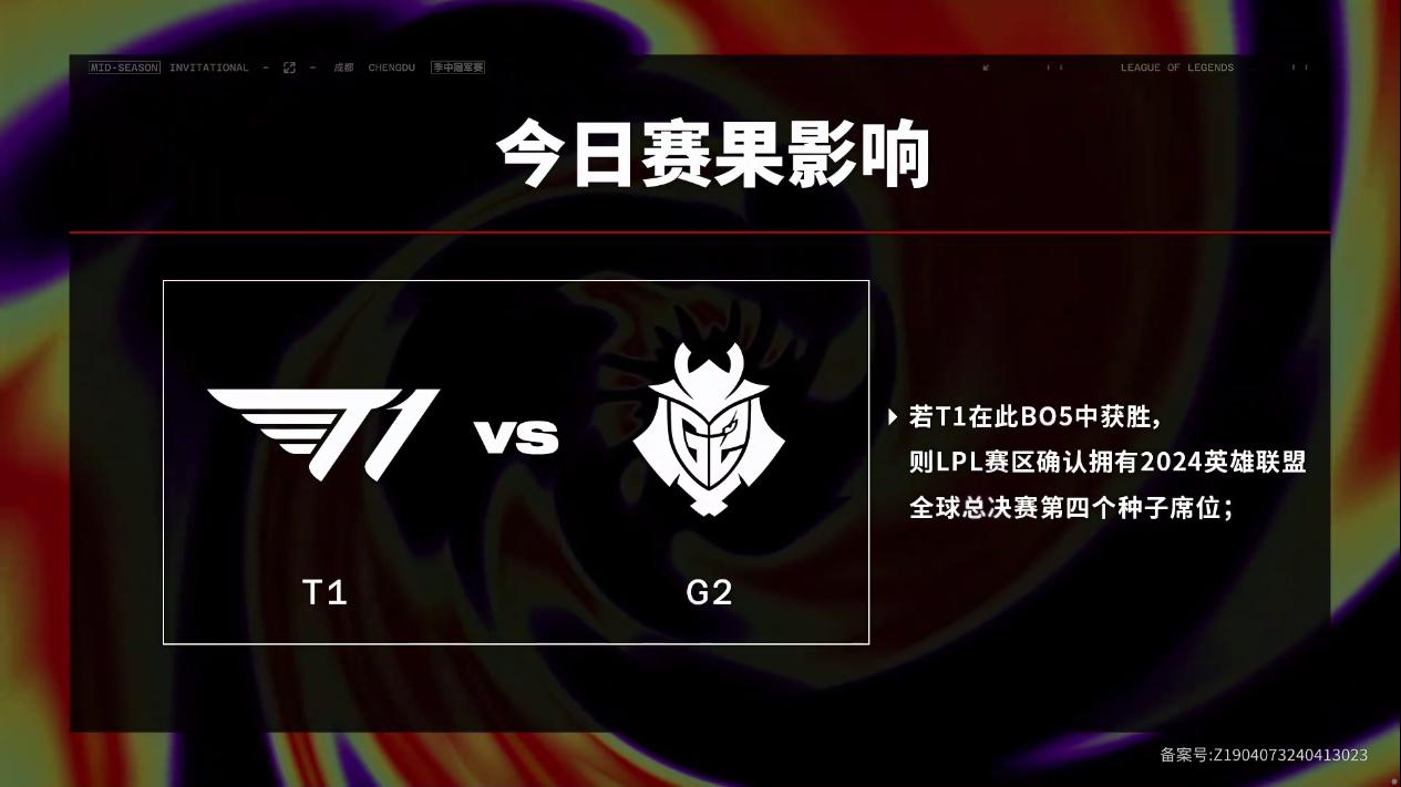 MSI今日赛果影响:若T1战胜G2,则LPL获得S赛第四个种子席位