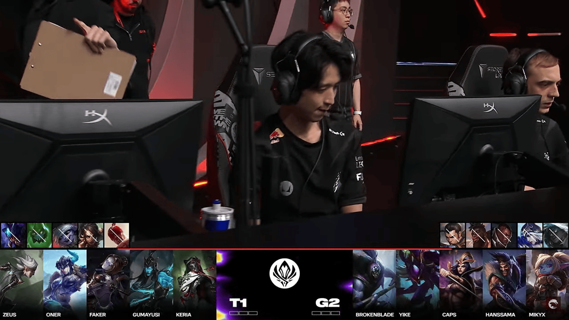 T1与G2首局BP:Hans Sama秒锁德莱文,Faker发条大战乐芙兰