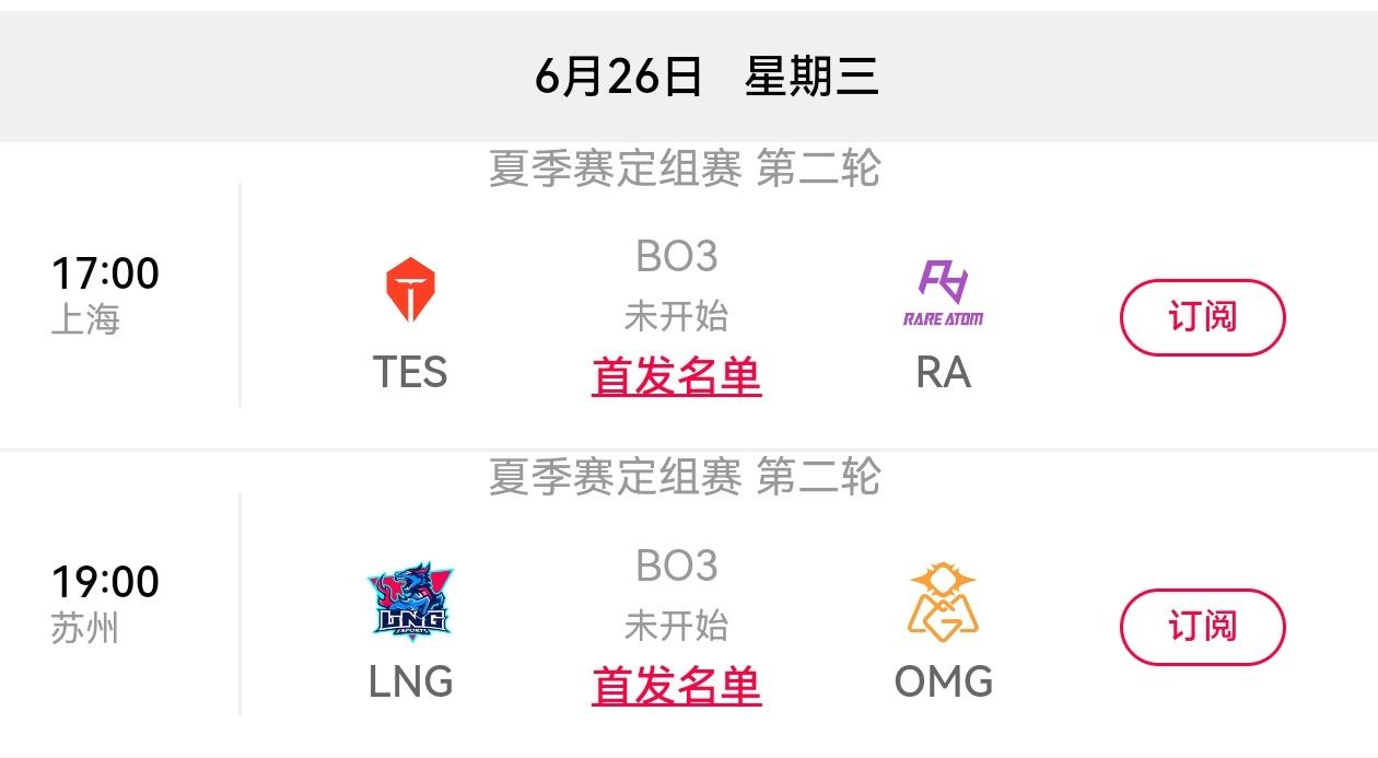 2024LPL夏季赛W4D3虎扑墙:TES vs RA、LNG vs OMG