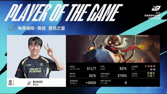 Meteor火男打出7/2/9的战绩,拿到LGD对阵BLG首局比赛的MVP