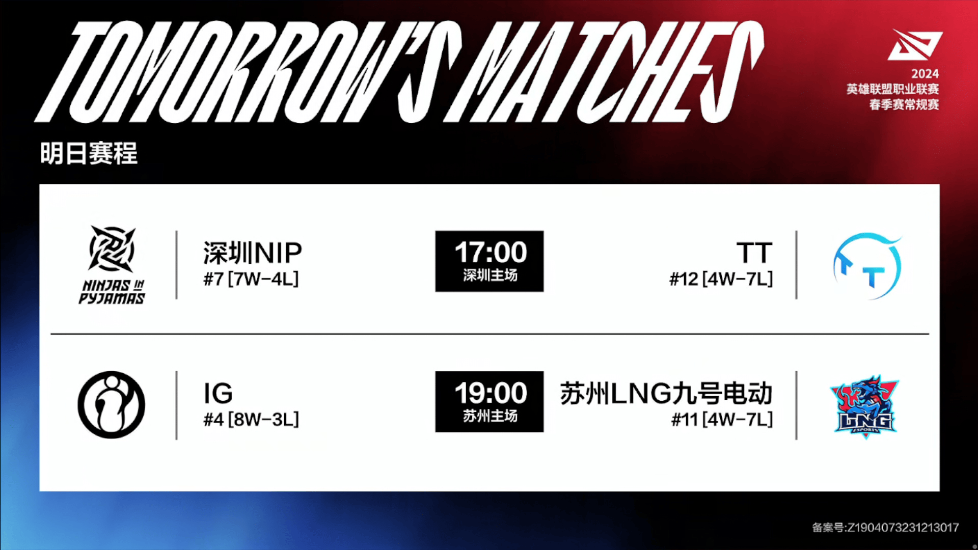 2024LPL春季赛W7D2虎扑墙:NIP vs TT、IG vs LNG