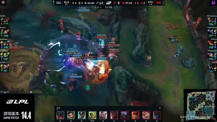 LPL:Bin剑魔天神下凡Q四个怒砍三杀!BLG瞬间0换5团灭FPX
