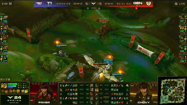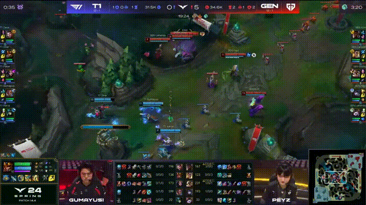LCK:Canyon芮尔轻松抢下T1小龙,GEN顺手击杀Keria娜美