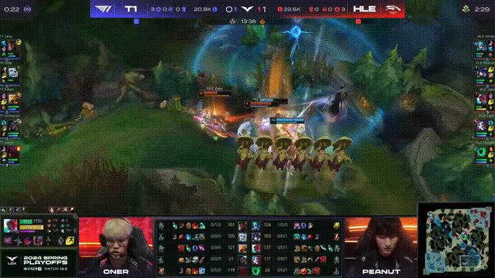 LCK:Oner佛耶戈连续收割,HLE先手埋伏反被T1打出1换3