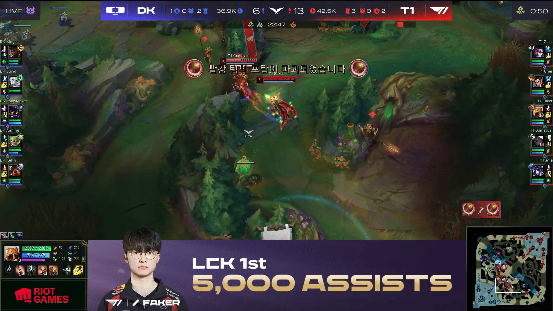 LCK:DK先手不利Faker发条反手大两个,T1大龙团1换5拿大龙