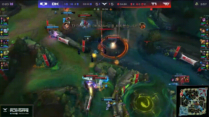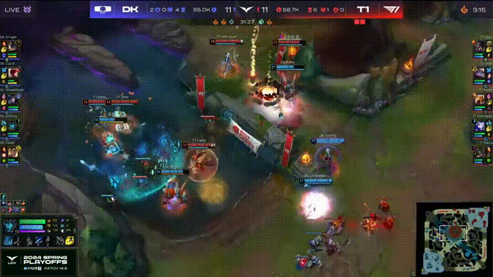 LCK:DK下路先手再度被反打,T1追击打出1换5后直接一波