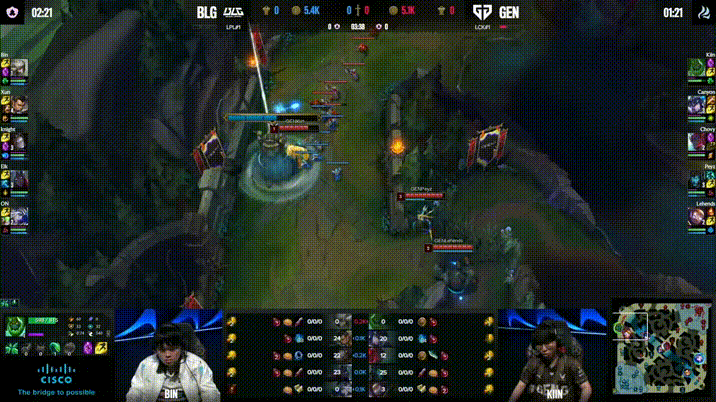 Lehends机器人又勾中ON艾希,GEN下路三打四反而打出1换2