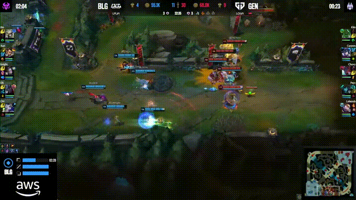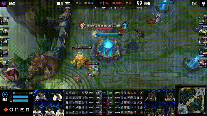 GEN抢下小龙,但BLG小龙团1换4大胜拿下大龙拉开5k经济差