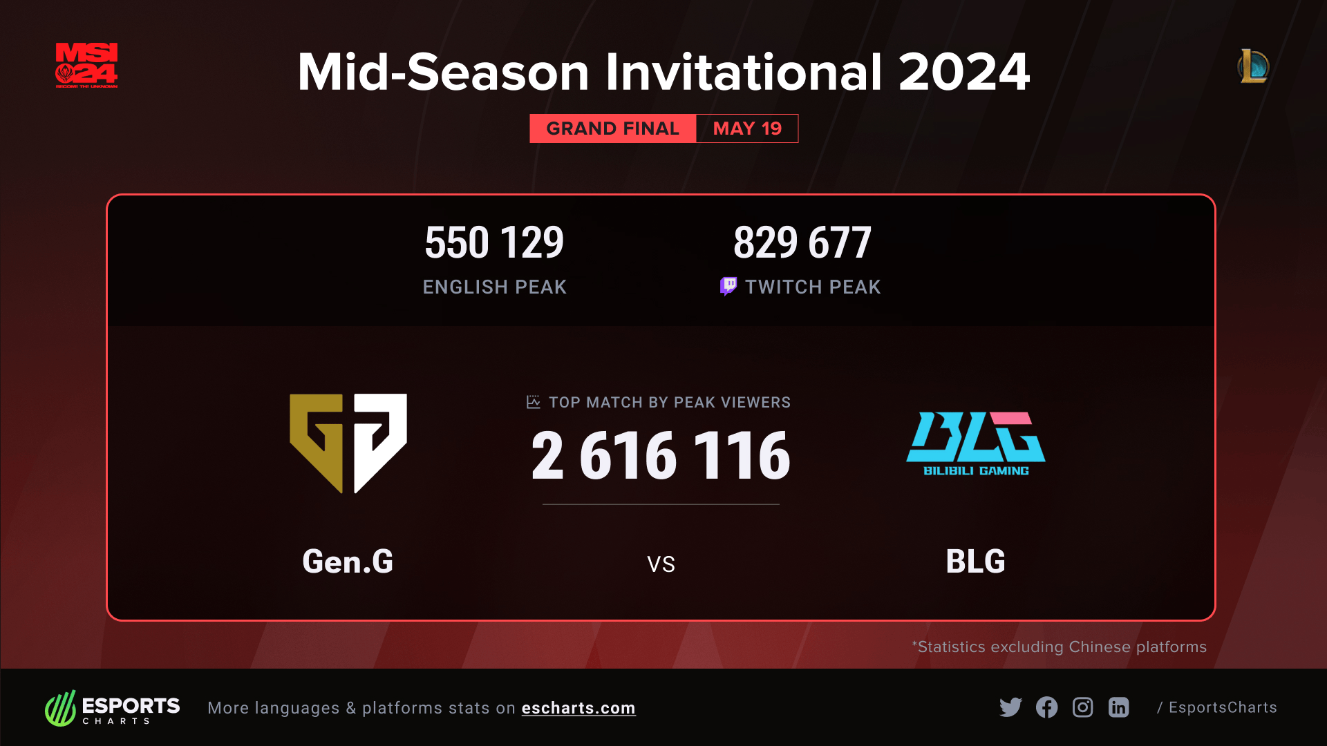 外网统计24MSI决赛观众峰值破260万,排在本届和MSI历史第二