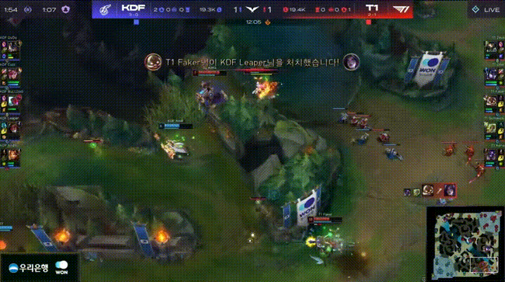 LCK:双方下路激烈对拼,Faker飞机TP下路帮助T1打出0换3